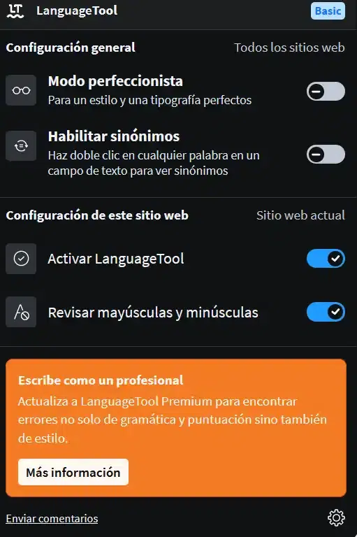 He descubierto una extensión para Firefox, el navegador que uso, que me ayuda a verificar y mejorar la gramática de una manera no intrusiva. Se trata de LaguageTool.
