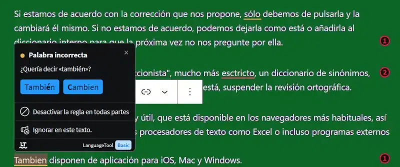 A la vez, nos irá señalando de los mismos colores las palabras sospechosas.