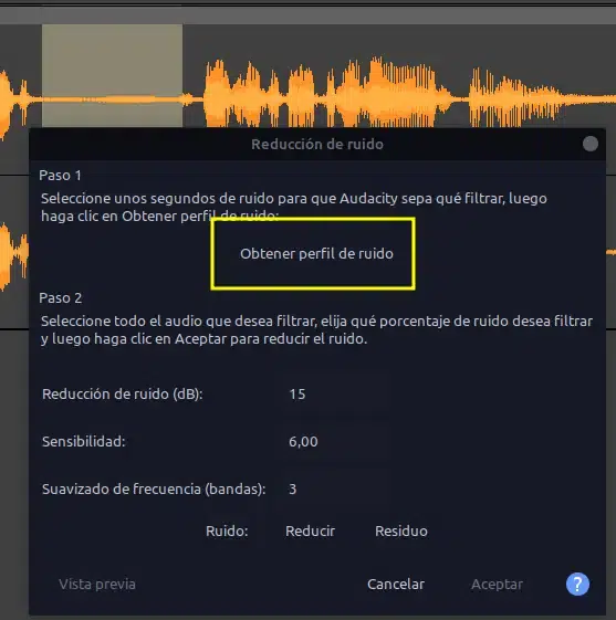Una vez listo, pulsamos Aceptar y tendremos un sonido mucho más limpio de ruido.