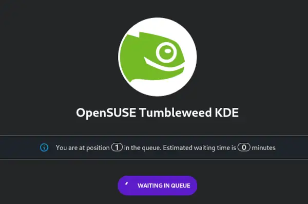 Simplemente elegimos la versión, la página verificará la conexión, si es posible conectar y nos dirigirá a una página de espera, con una «cola» para poder usar la distribución.