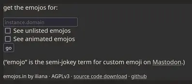 Para conocer todos los emojis que tiene nuestra instancia, o cualquier otra, la desarrolladora Iliana Etaoin ha creado una web muy simple llamada EMOJOS donde introduciendo la instancia de Mastodon, te muestra los iconos que tiene instalados.