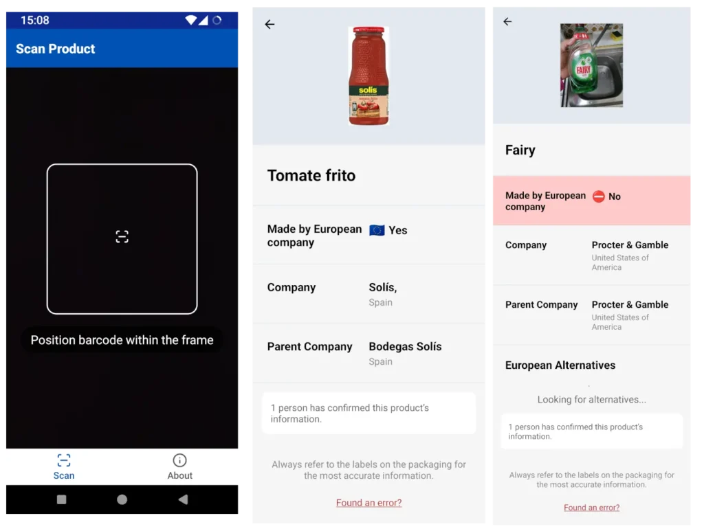 Me he encontrado una app para Android (aunque hay varias) que permite comprobar si un producto está fabricado por empresas europeas… Buy European