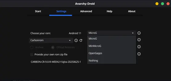 Una vez decidida la rom, si lo permite, nos deja elegir entre varios proyectos de las apps de Google. No son las propias apps, sino versiones alternativas de la implementación de Google, para poder instalarlas si queremos y no tenemos problemas con otras. Son varios proyectos similares entre sí.